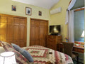 Cozy room with King Bed and private shower bathroom, high ceilings, and independent temperature controls.